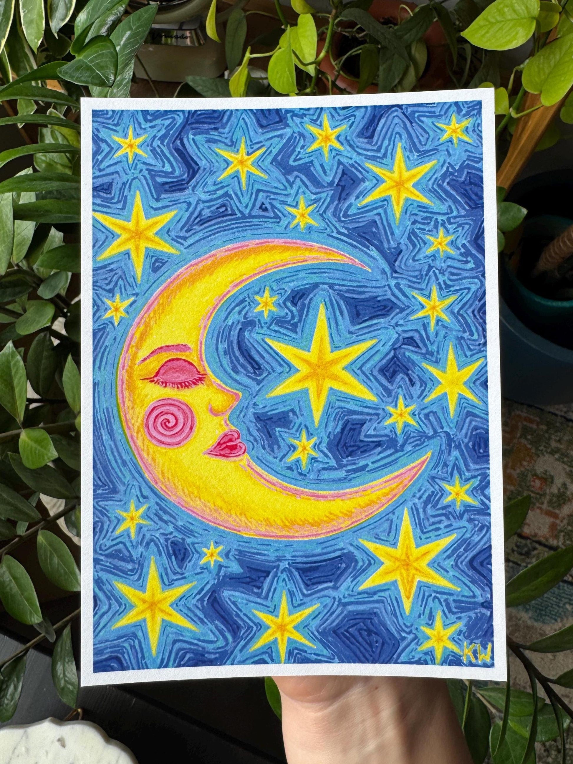A bundle of two 4x6, 5x7, or 8x10-inch celestial art prints, which include the moon and sun! These prints make beautiful decorations. Whether you hang them in your kitchen, apartment, or gallery wall, they will brighten up your room!
