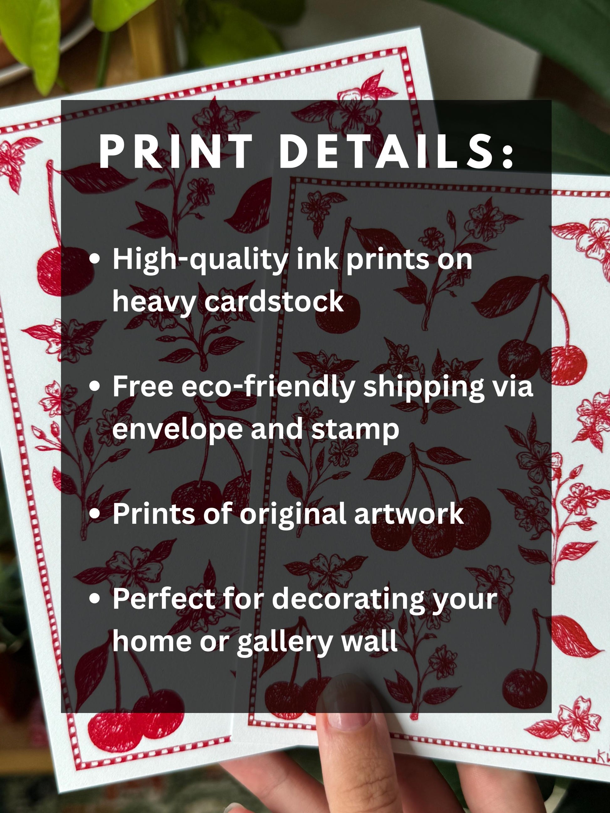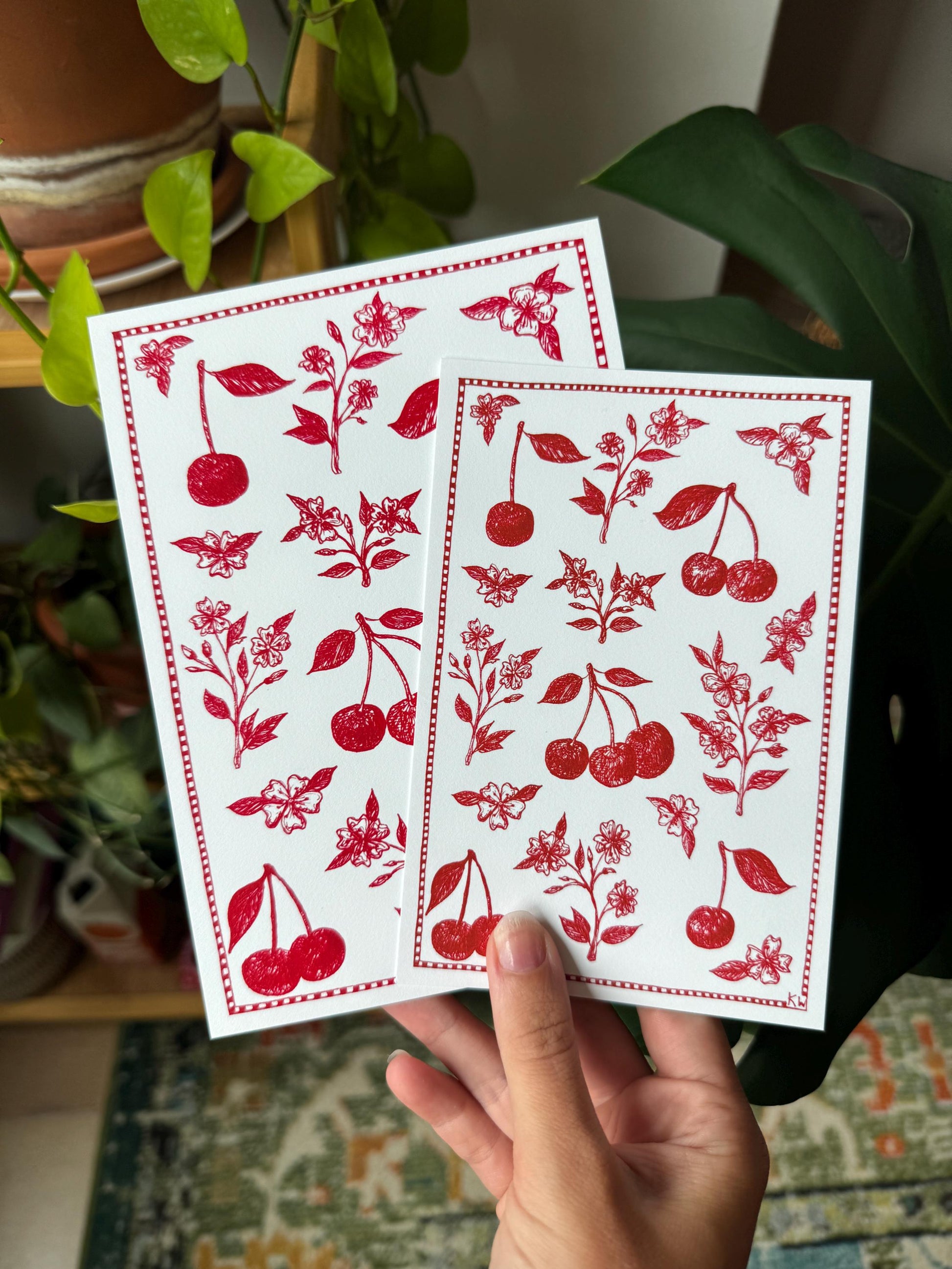 This Cherries Collage art print is based on an original drawing done in ink from my sketchbook! This was inspired by one of my favorite fruits, the cherry!
