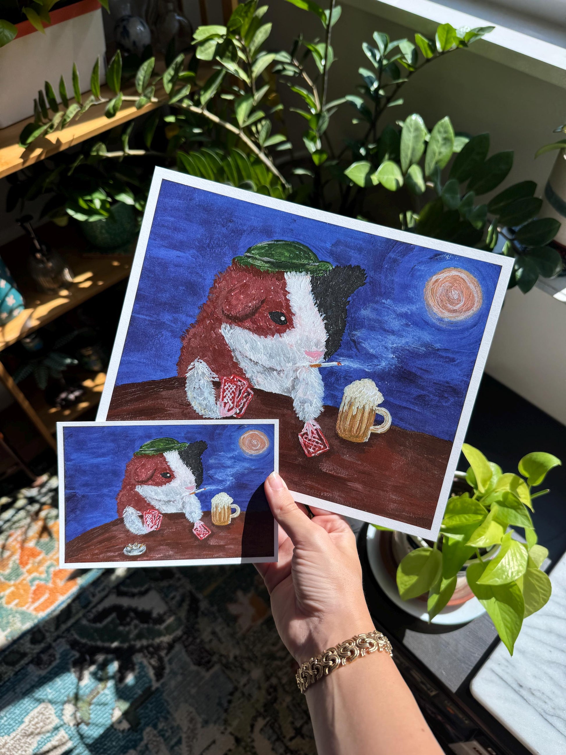 This Drinking Pub Hamster art print is based on an original painting done in acrylic from my sketchbook!