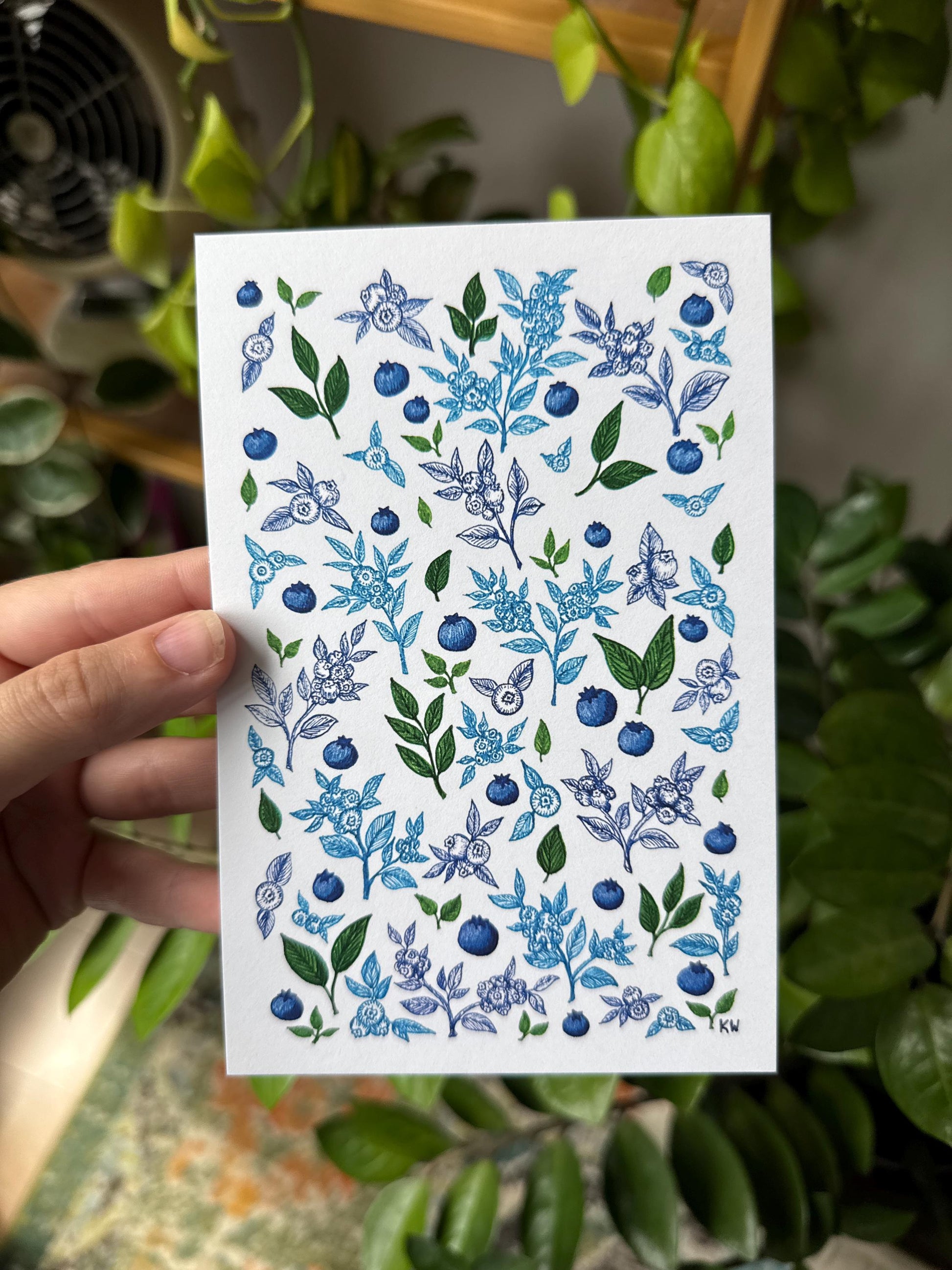 A fruity bundle of four 4x6 or 5x7-inch art prints, which include lemons, cherries, blueberries, and oranges!