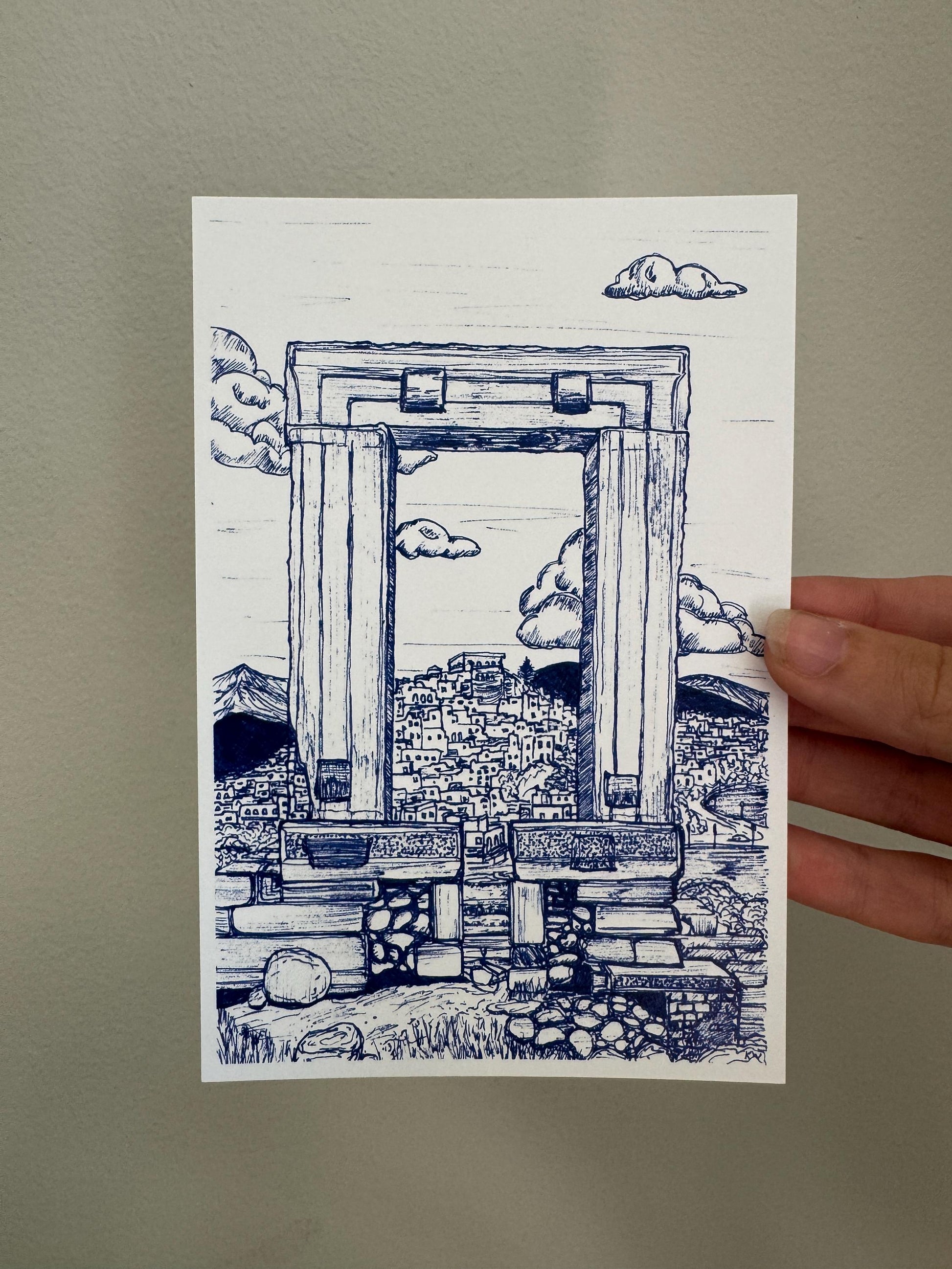 This 4"x6" Greece Naxos art print is based on an original drawing done in blue ink from my sketchbook! The building depicted is the Temple of Apollo which sits outside of Naxos Town.