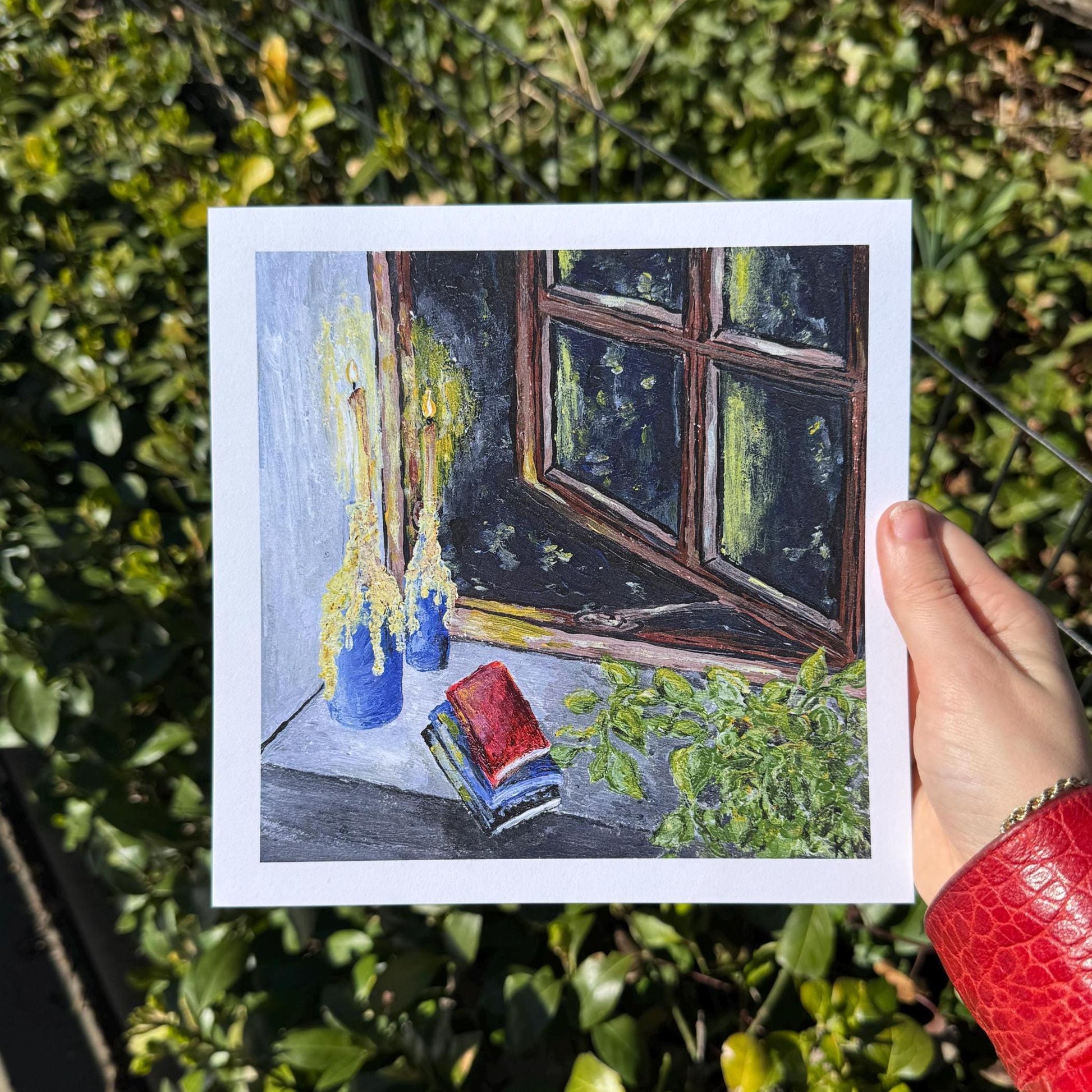 This 8"x8" Night Candlelight art print is based on an original acrylic painting from my artbook!