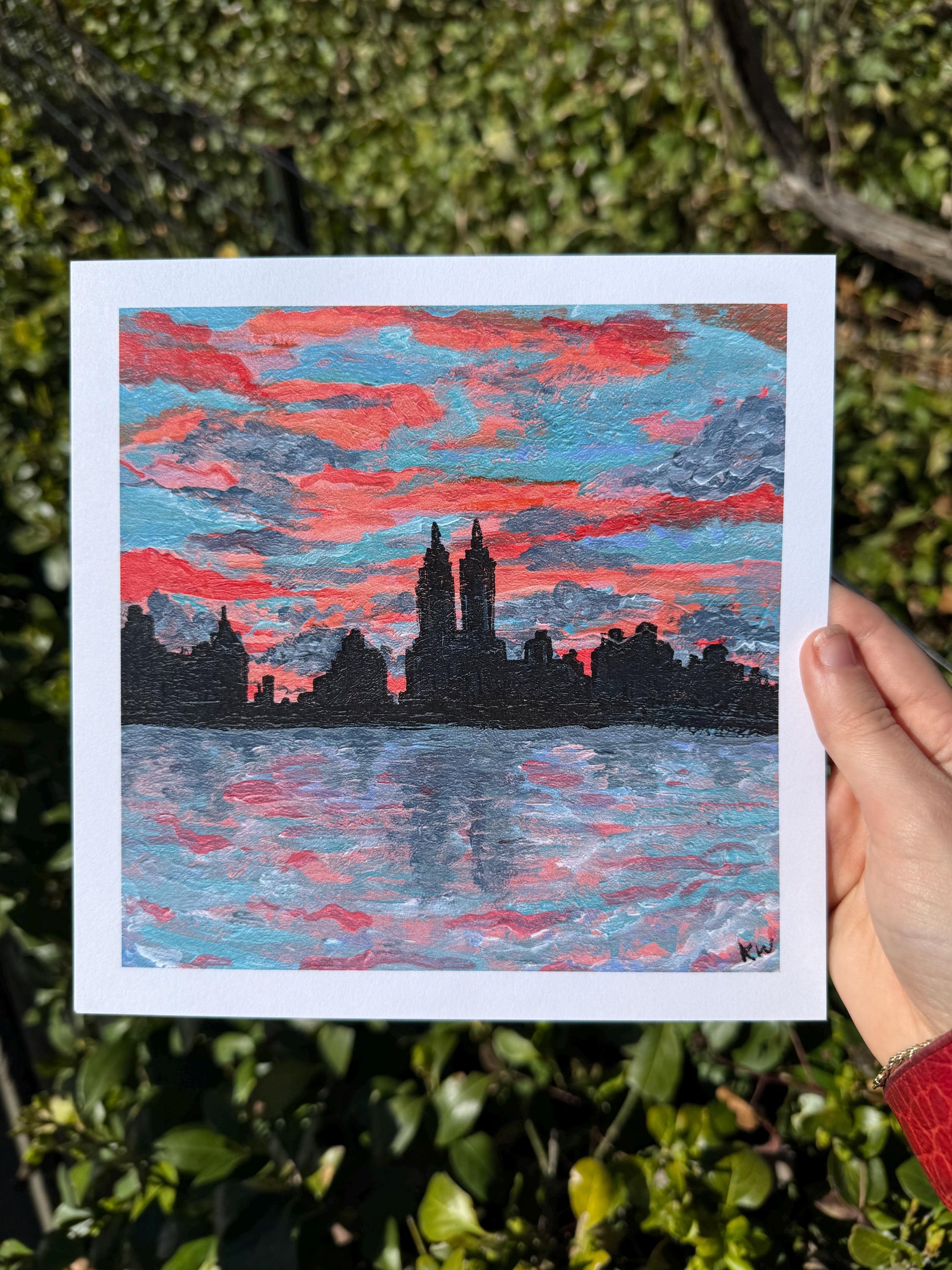 This New York City Skyline art print is based on an original acrylic painting from my art book. This piece is inspired by an incredible sunset over the Upper West Side of NYC!