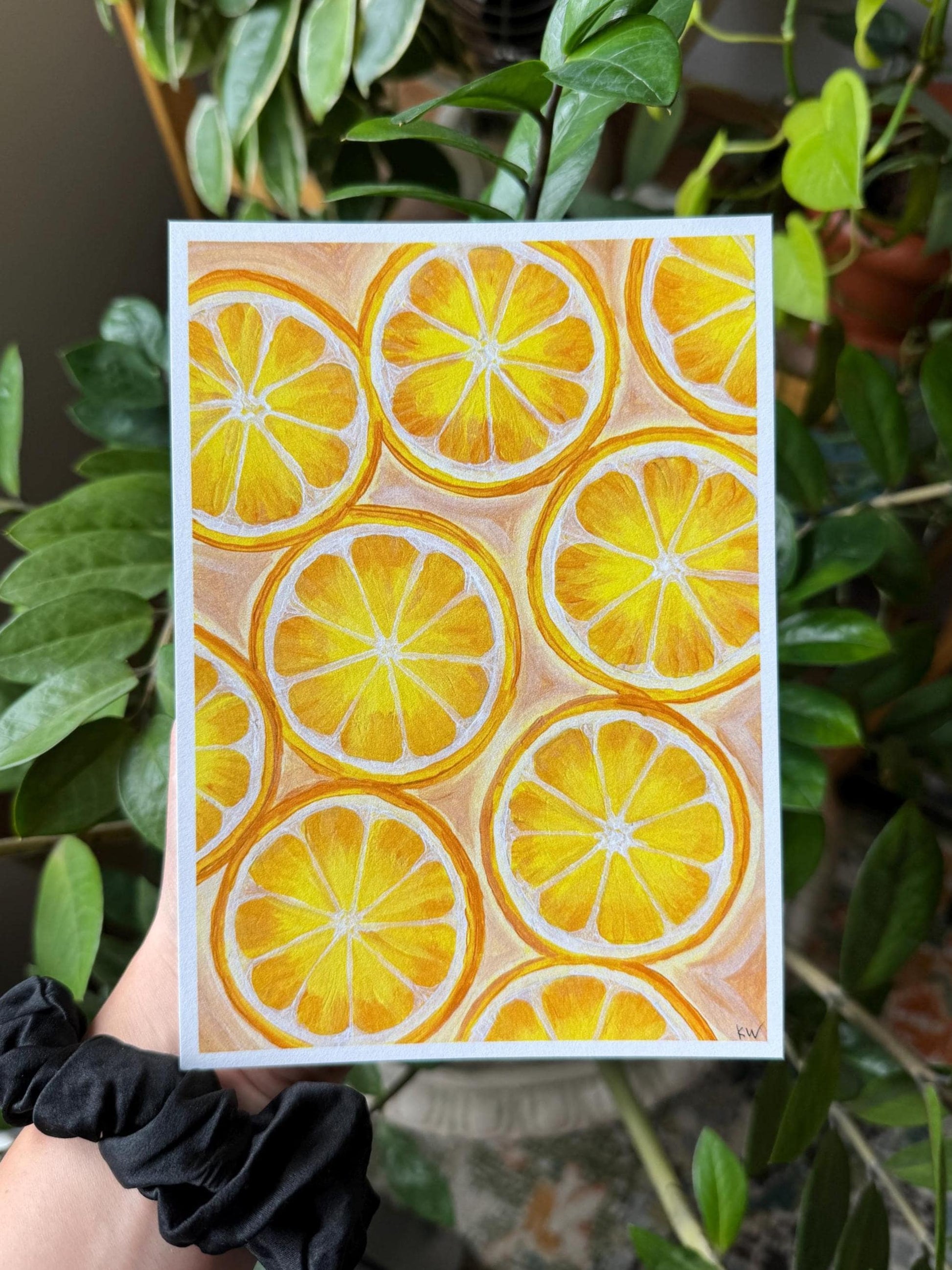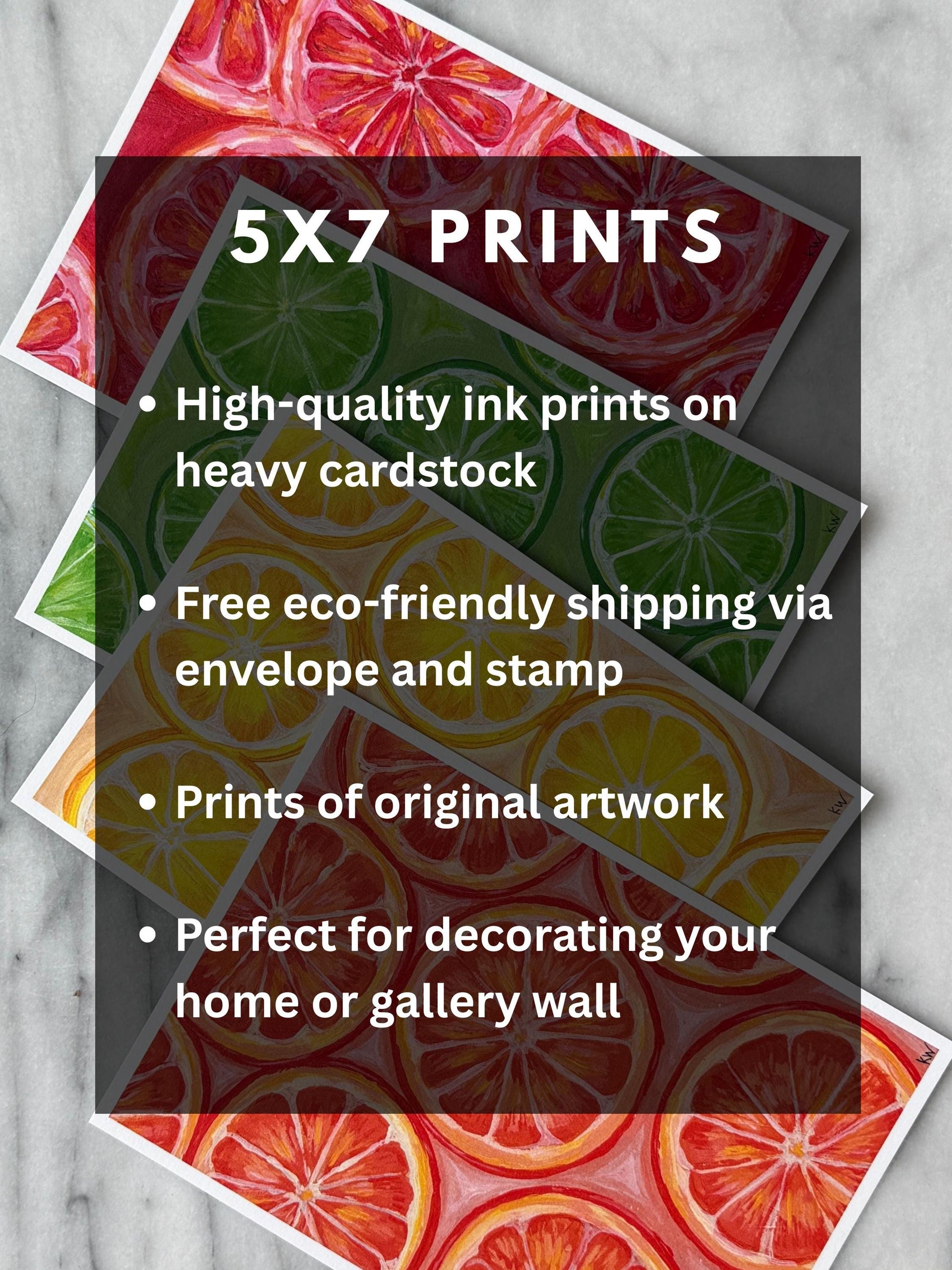 A citrusy bundle of four 5x7-inch art prints which include oranges, limes, lemons, and grapefruits!