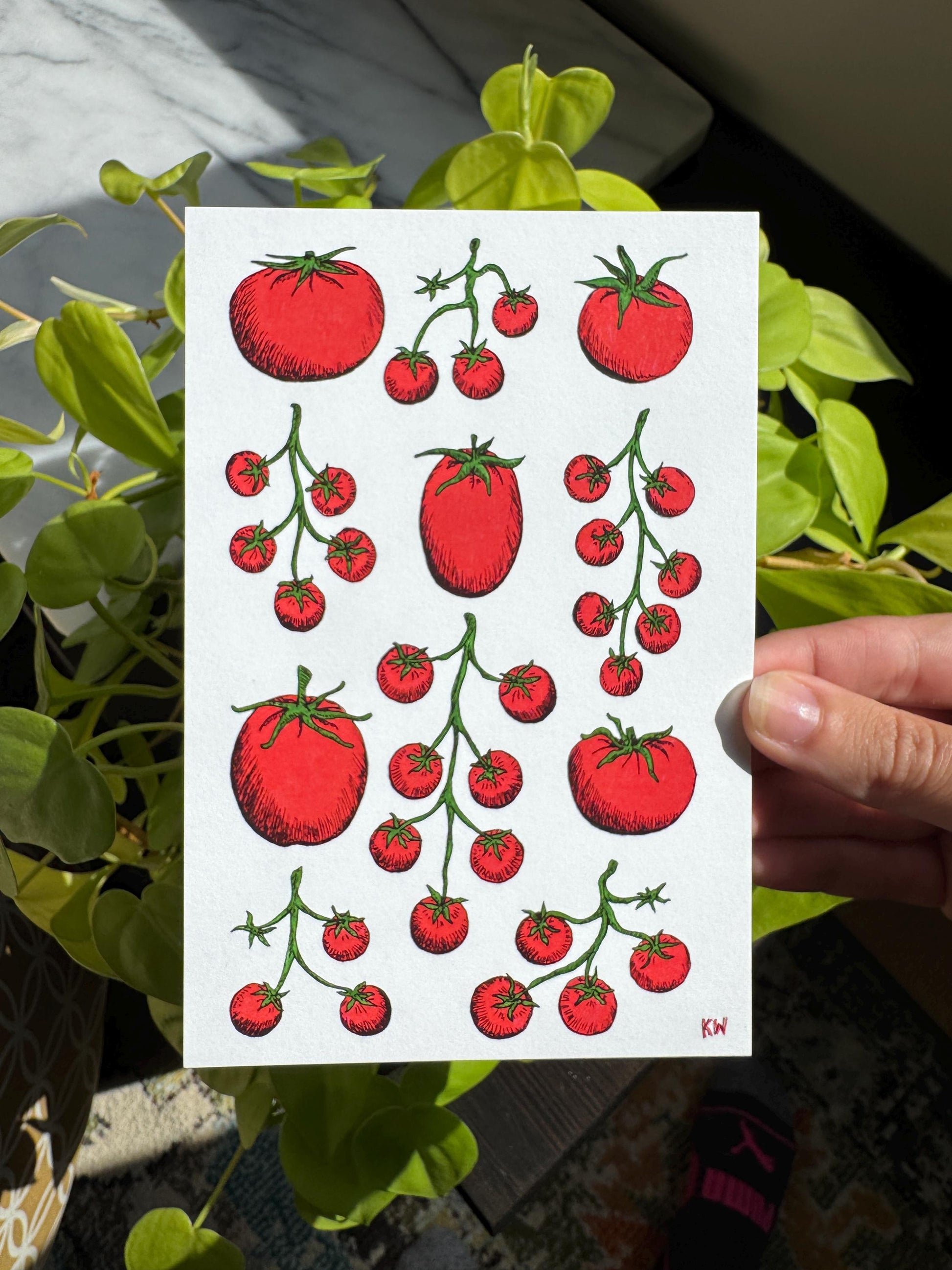 This 4"x6" tomatoes collage art print is based on an original drawing done in both ink and marker from my sketchbook!