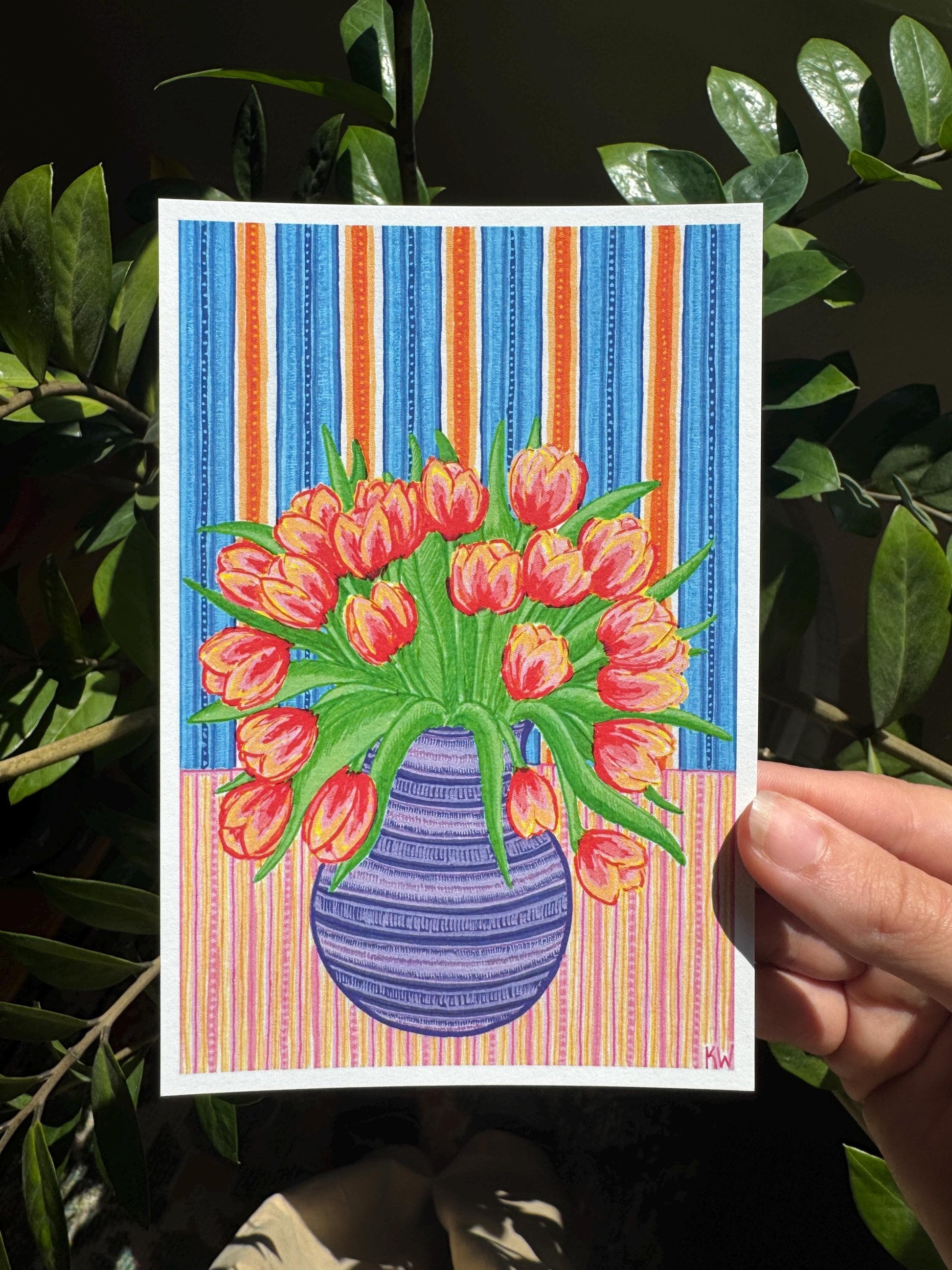 This 4"x6" Tulip Flower Vase art print is based on an original drawing done in both ink and marker on a wood block!